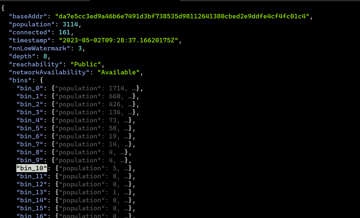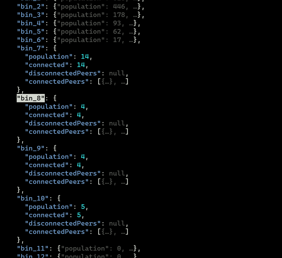 Connectivity depth refers to the saturation level of the node’s topology - the level to which the topology of a node’s connections has Kademlia connectivity. Defined as one level deeper than the deepest fully saturated level. A PO is defined as saturated if it has at least the minimum required level of connected nodes, which is set at 8 nodes in the current implementation of Swarm.